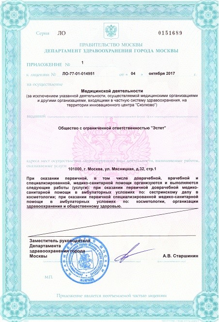 •услуги косметолога(в том числе инъекционная косметология, наличие мед. лицензии)